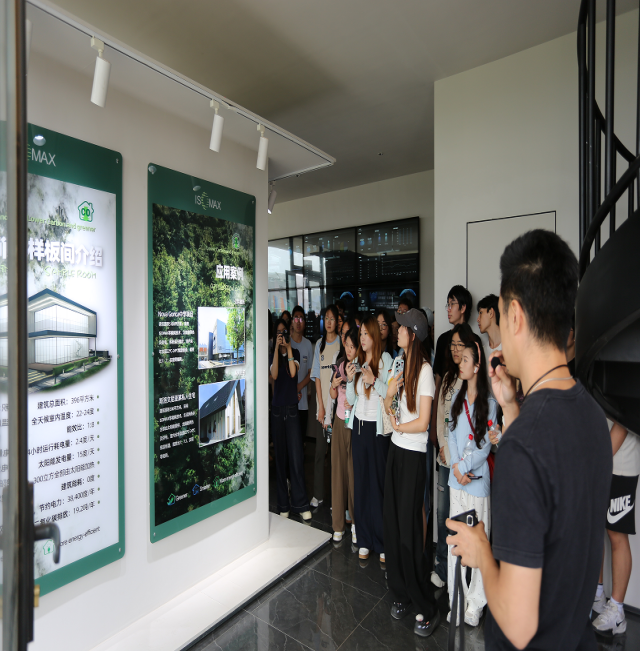 在企业研发部门工程师的引领下,师生们重点参观了绿谷科技园的ISOMAX超低能耗建筑样板间。该零碳生活体验中心由8个废旧集装箱改造,展现了颠覆性创新:能源自循环、极致节能、艺术化表达,成为“可触摸的绿色科技”。前沿的“近零能耗”“恒温恒湿”技术令师生们大开眼界,深刻感受到科技赋能绿色建筑的巨大潜力。