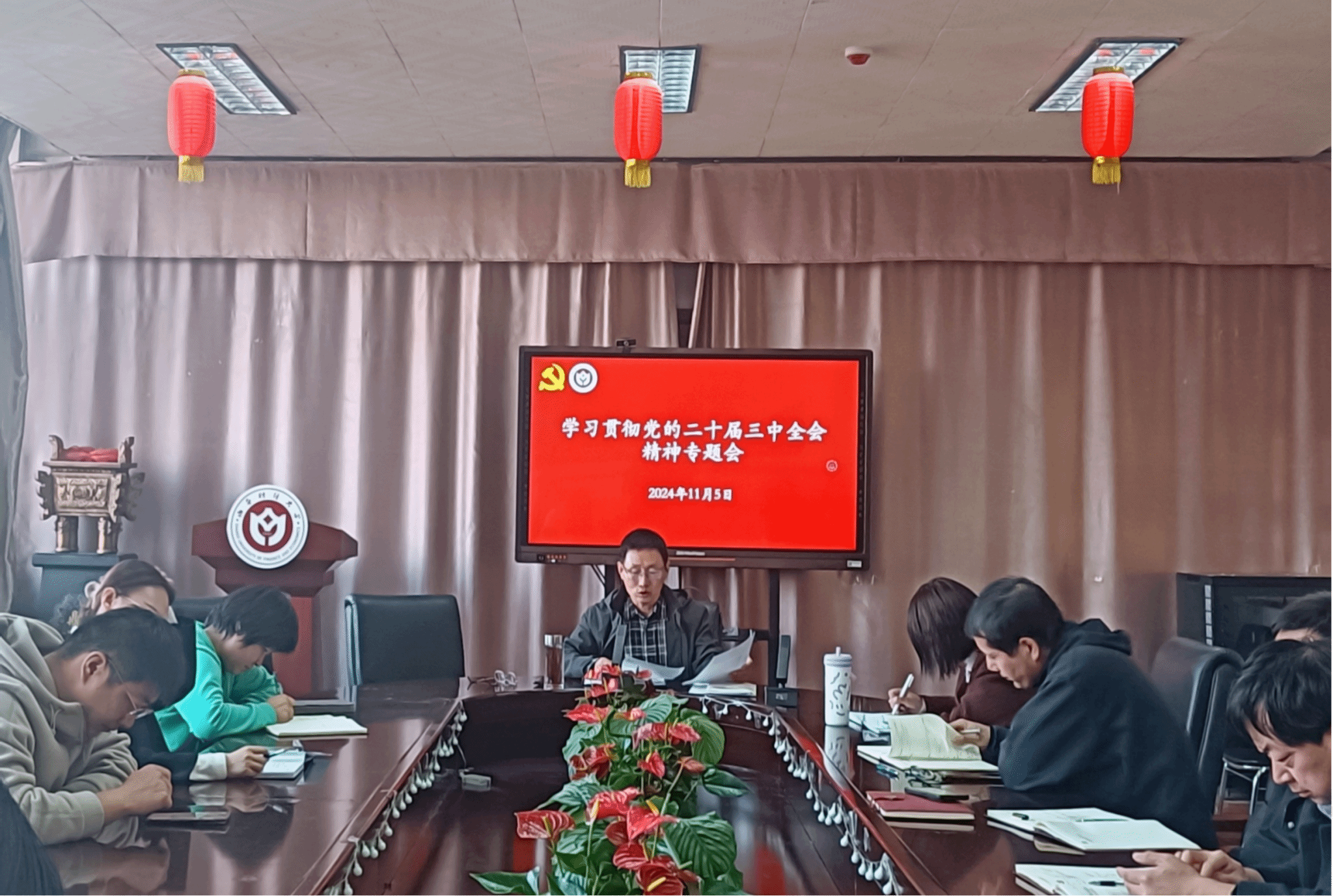 11月5日下午,成人社区 党委召开党支部书记工作例会,专题深入学习贯彻党的二十届三中全会精神。党委书记郭晋南主持会议,各党支部书记及学生党建工作部部分学生参加了此次会议。