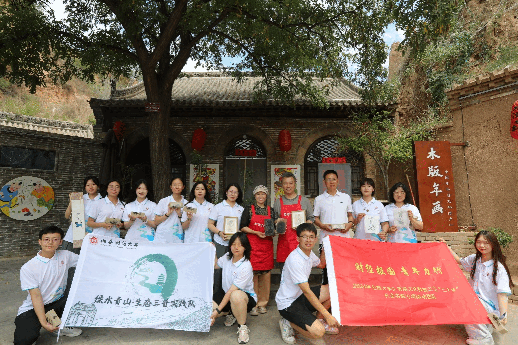 二是师生智慧创想与身体力行交相辉映。在后沟古村,青绿实践队不仅亲身参与到传统年画、五谷画和手工剪纸的制作过程,倾听了缠丝香囊等非遗传承艺人的讲述,还身体力行,提出了一系列振兴后沟古村非遗产业的创新设想与创意产品。7月20日下午,资源与环境经济学专业赵文珺老师通过一场题为“传统非遗·木版年画”的直播活动,生动再现“木版年画”的制作工艺流程,累计获赞达2.9万次。在后沟古村景区,结合经济学专业学科知识与技能,师生们还精心设计了一系列后沟文创产品,独具特色的剪纸、富有韵味的灯笼以及精致独特的项链等,并绘制文旅地图。青绿实践队成功策划举办文创集市与义卖活动,为古村带来带来经济效益的同时,接力乡村振兴,为文化遗产产品的设计与开发注入新鲜创意与青年活力。